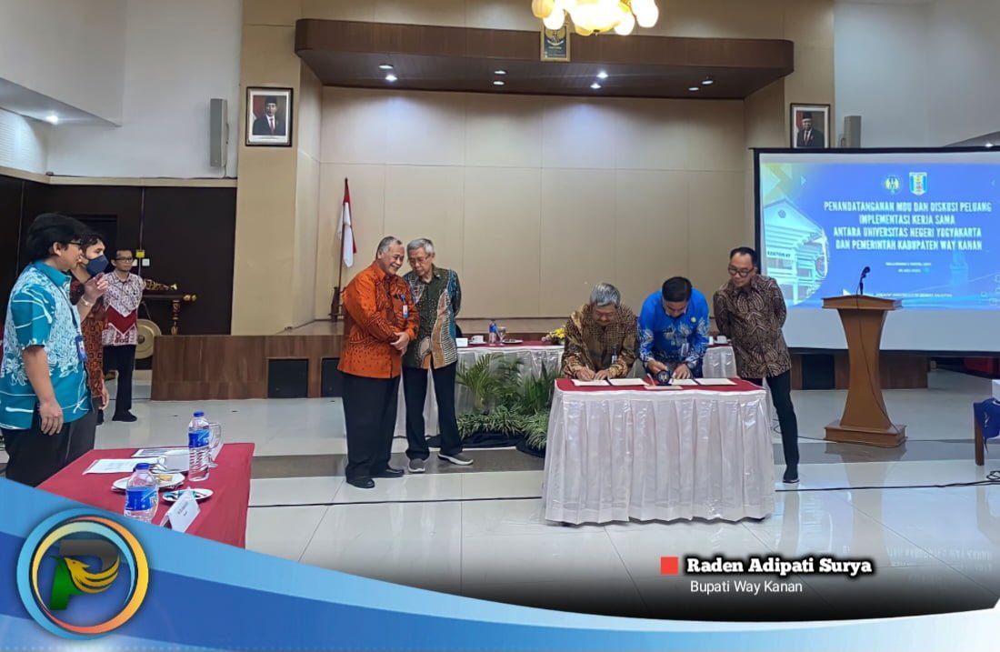 psiaceh.or.id/ – Pemerintah Kabupaten Way Kanan dan Universitas Negeri Yogyakarta (UNY) menandatangani Memorandum of Understanding (MoU) di Ballroom 1 dan 2 Hotel UNY, Yogyakarta, Kamis (25/05/2023).