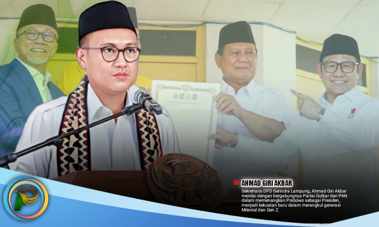 psiaceh.or.id/ – Sekretraris DPD Gerindra Lampung, Ahmad Giri Akbar menilai dengan bergabungnya Partai Golkar dan PAN dalam memenangkan Prabowo sebagai Presiden, menjadi kekuatan baru dalam merangkul generasi Milenial dan Gen Z.