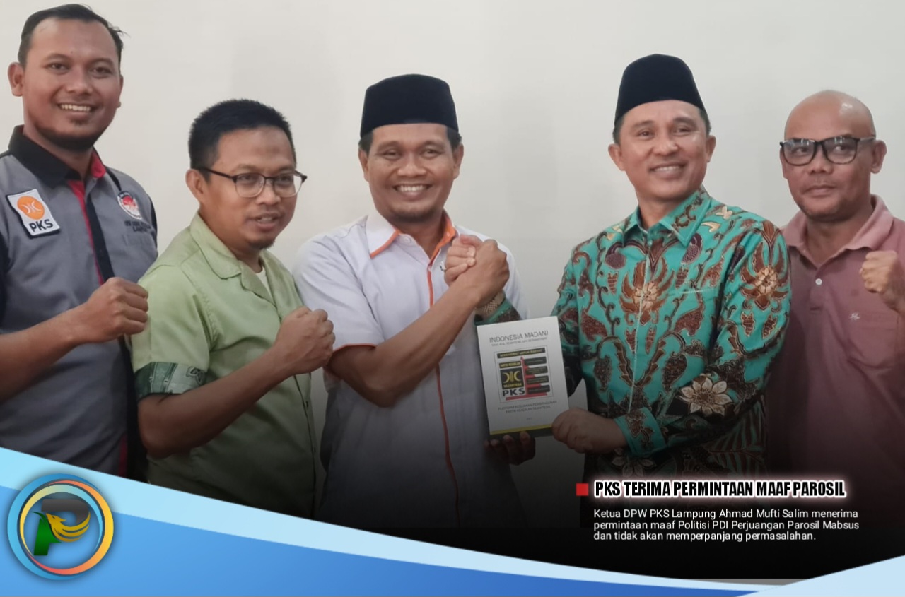psiaceh.or.id/ – Ketua DPW PKS Lampung Ahmad Mufti Salim menerima permintaan maaf Politisi PDI Perjuangan Parosil Mabsus (Pakcik) dan tidak akan memperpanjang permasalahan.